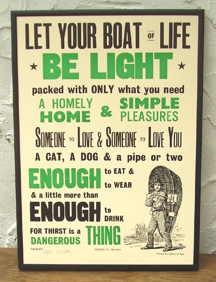 Describe the creative process in designing and constructing a particular piece. "The concept usually comes from Lesley, who gets excited/enraged/infatuated quite easily. We talk about words and phrases, write them in lots of notebooks and then forget where we put them. Lesley is strictly analogue and prefers paper, but Pea is digitally oriented with great design ability, and hones the wilder ideas into achievable and pleasing forms on an ancient computer. From there we decide on the most appropriate medium for the work – could be linocut, could be woodtype, maybe a bit of both. Lesley draws the design for lino and Pea carves it, then we print it together on our tabletop press. The letterpress designs are made by Pea with Derek and Ian, the highly skilled compositor and printer at Adams of Rye: the best old-school printshop in the world."